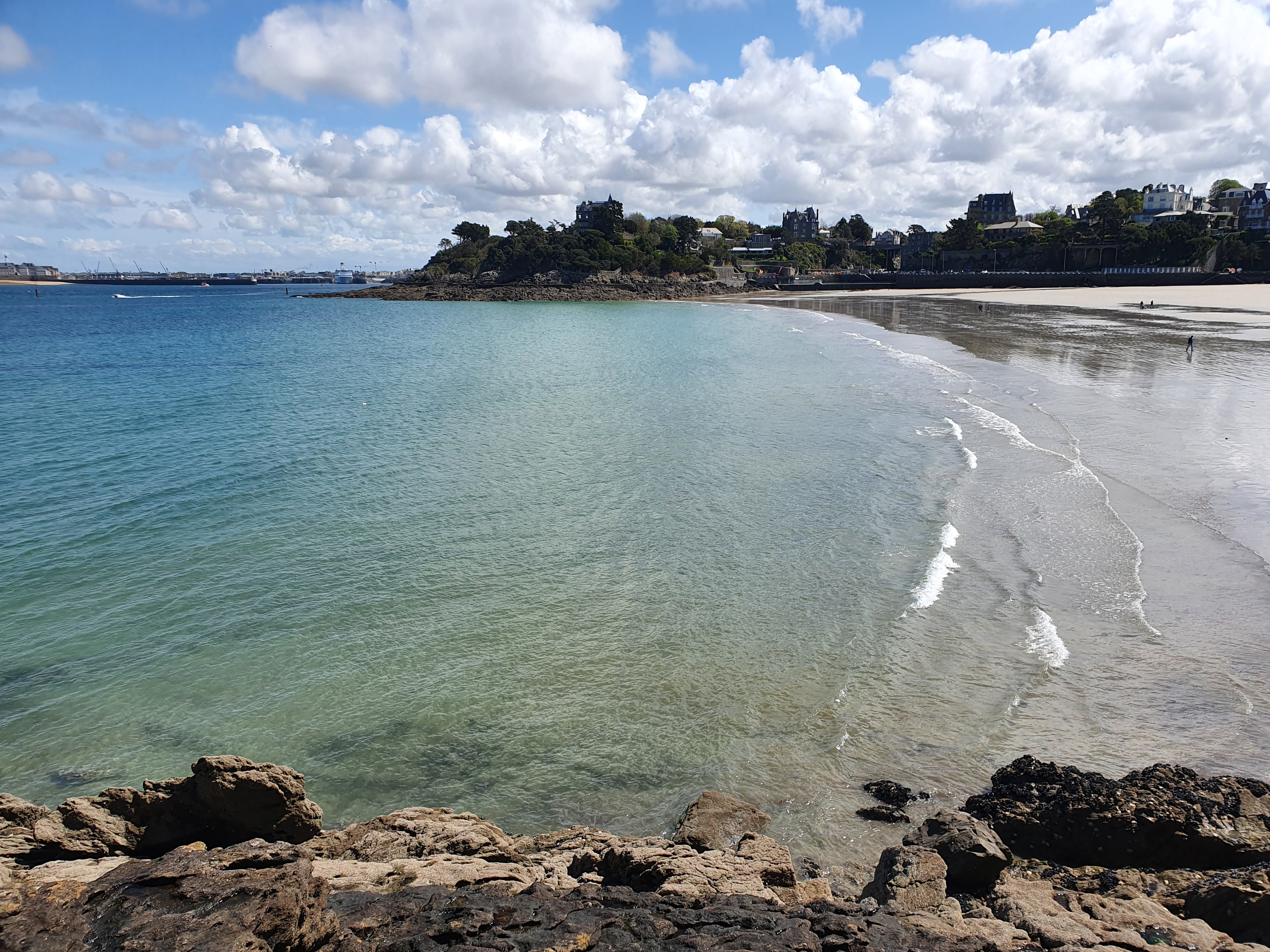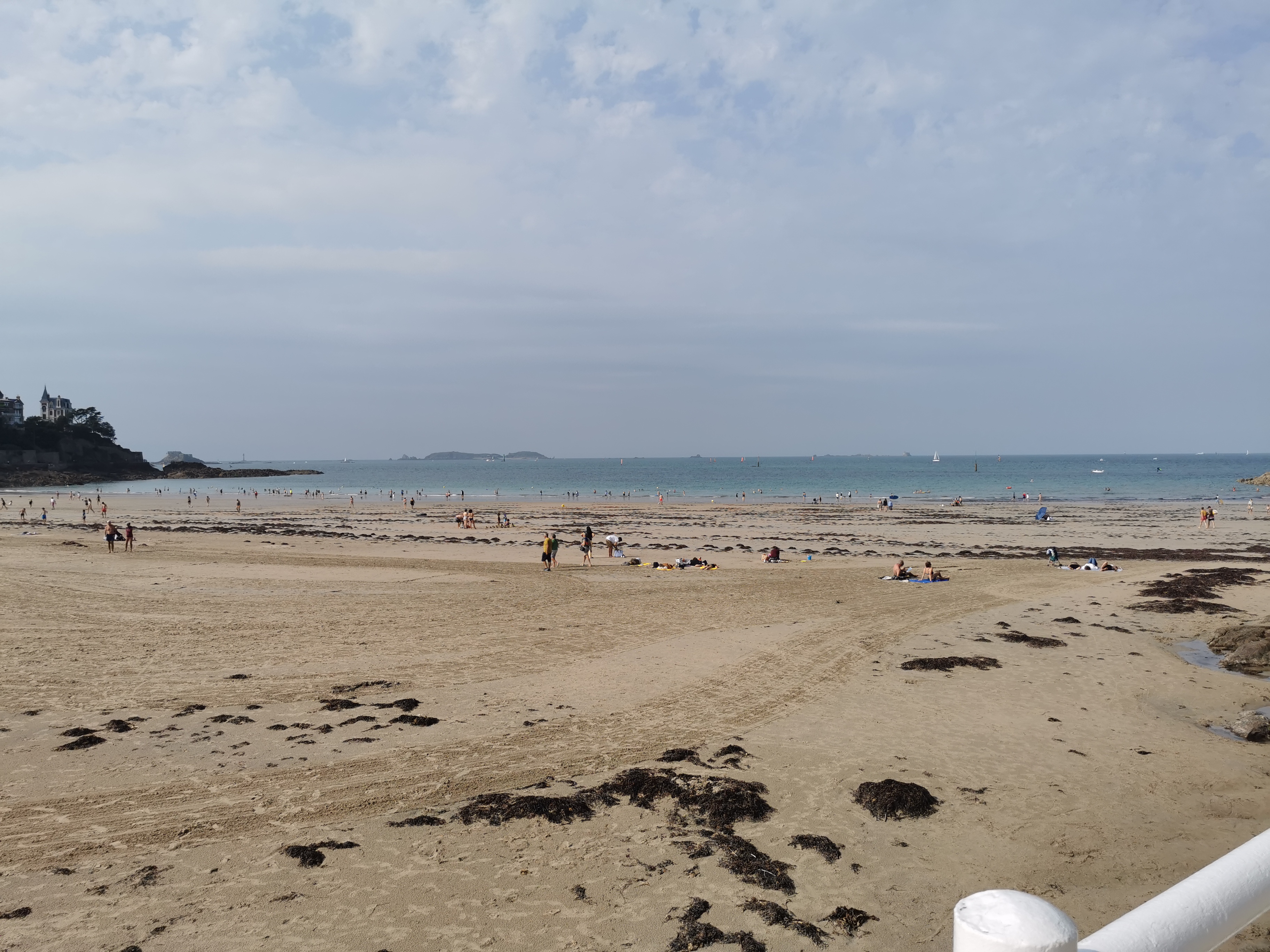 Très jolie plage de Dinard, agréable pour se poser, se baigner. Une belle balade à faire sur le sentier pour découvrir les belles demeure, les beaux paysages et voir Saint-Malo au loin. Plusieurs endroits de restauration et pour prendre un verre ou une glace.
