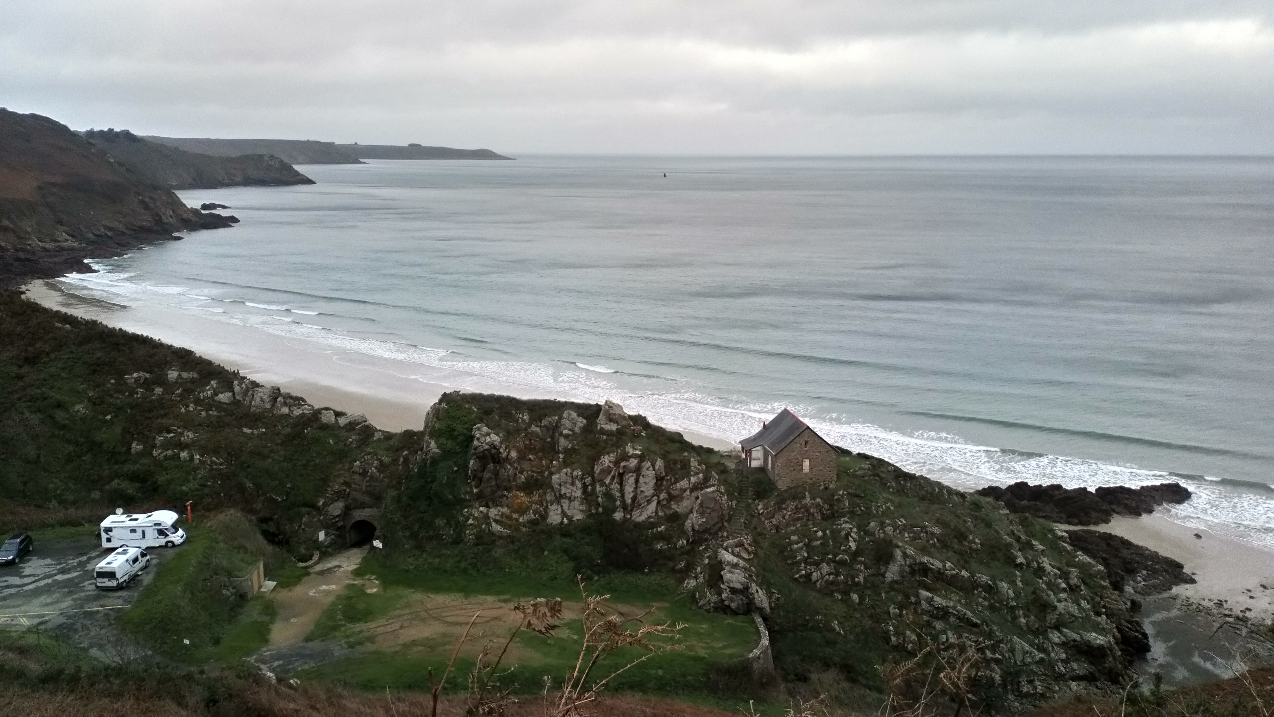 Posté le 14/09/2021 à 12:10"Sur cette plage vous n'aurez du sable que lors de la marée basse, et encore ici c'est sable mouillé! sinon bel endroit, vue magnifique, petit parking vite rempli et toilettes. ne pas hésiter à monter sur les coteaux du GR34 passant devant, pour y avoir une vue panoramique, attention ça grimpe dur et de suite."