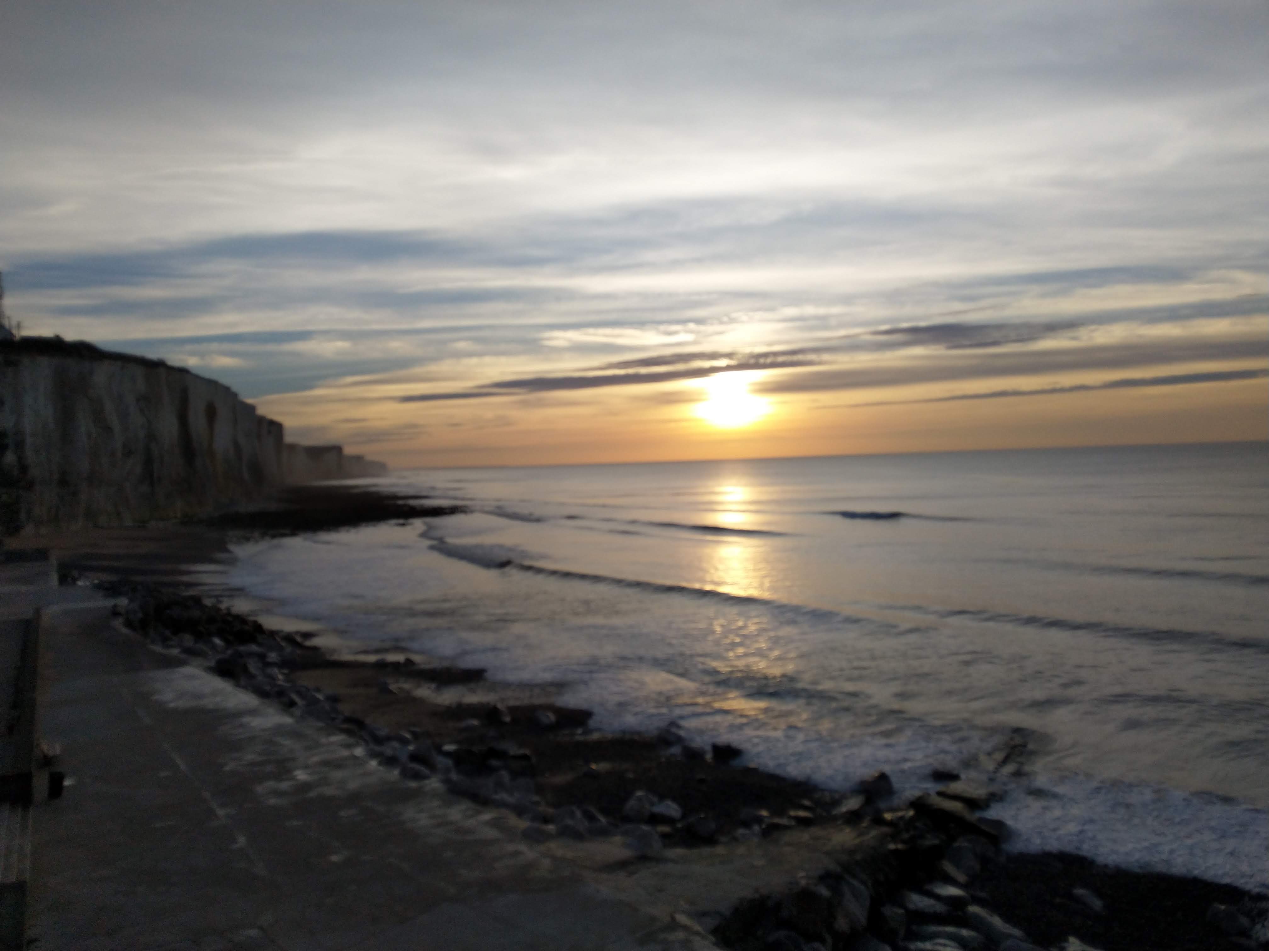 Incroyable, à gauche les falaises, à droite bien la plage de galet a l'infini. La mer est vraiment superbe, le coucher de soleil il faut venir le voir une fois.