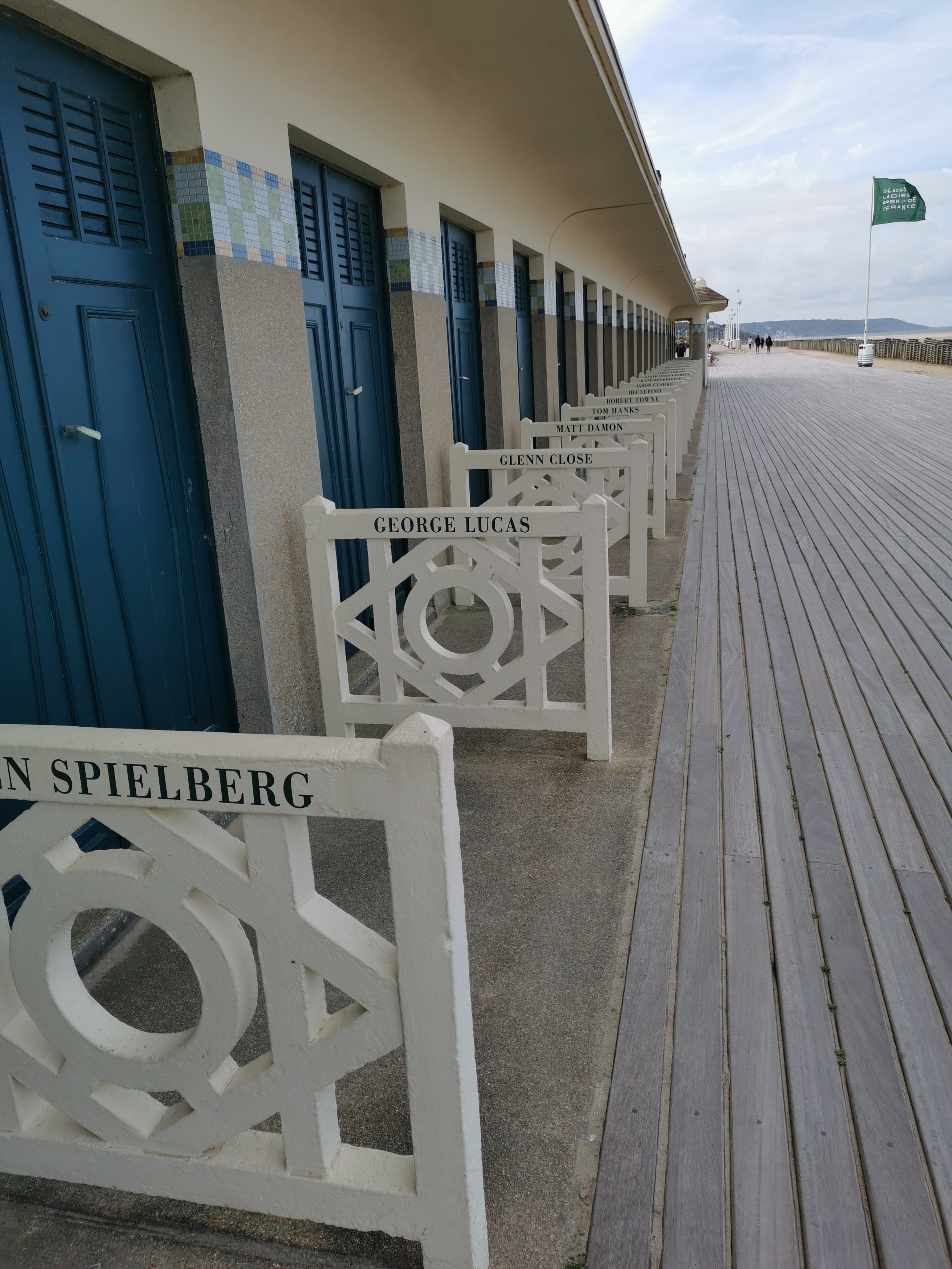 Posté le 16/09/2023 à 18:25"La plage est immense et mythique avec ses multiples parasols qui se transforment en cabines de couleur 😊 les fameuses planches avec les cabines un tantinet vintages qui portent les noms des acteurs américains festival du film américain oblige 😉les magnifiques et grandes demeures de style belles années qui bordent la côtes dont le fameux hôtel de Normandie !!"