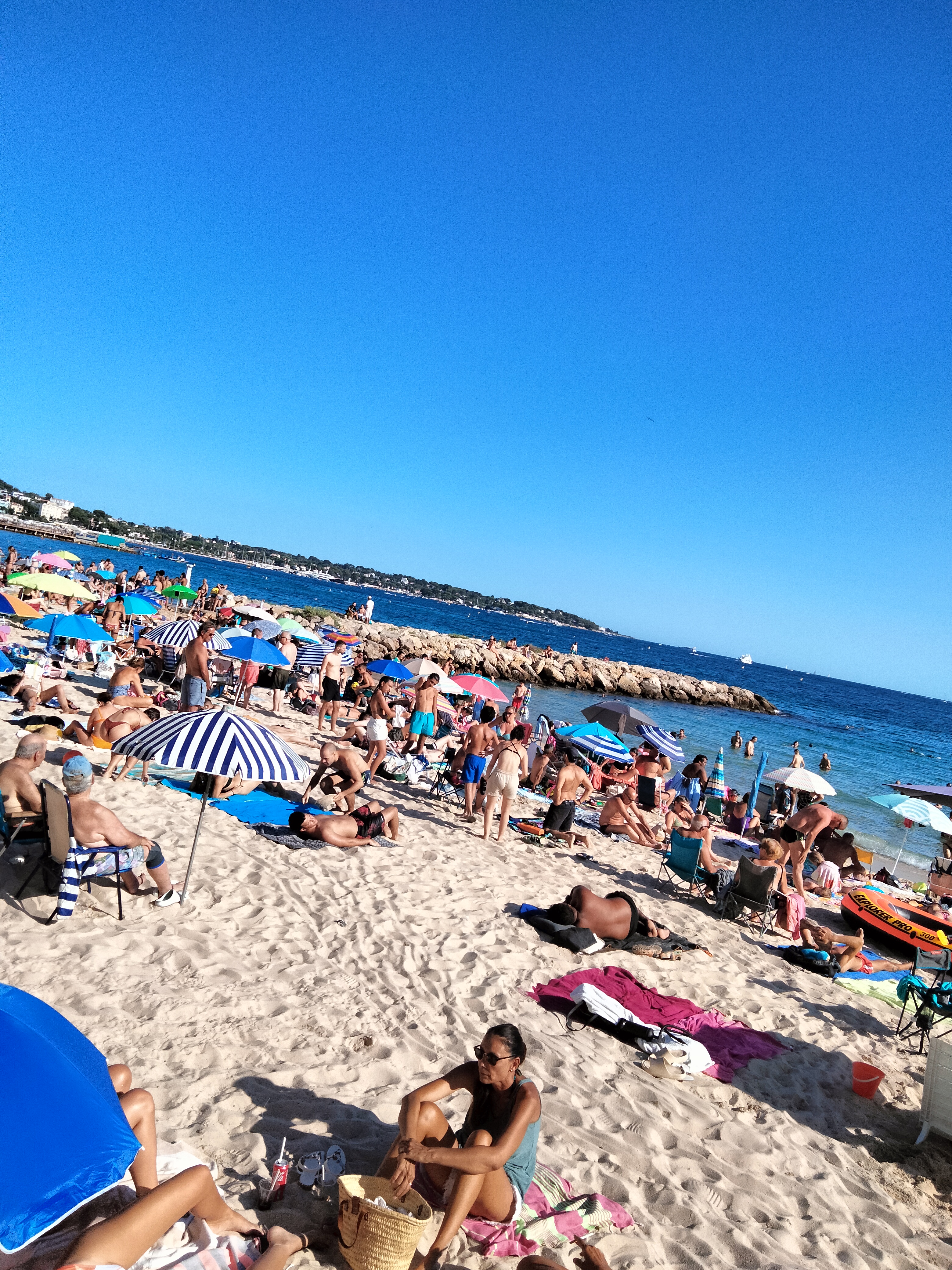De passage sur Juan. Très surfait. Petite bande de plage publique de sable certes fin mais surpeuplée sur le moindre cm2...même en période de crise sanitaire, la plage semble continuer à vivre comme en 2019, sans civisme (fumeurs et autres qui piétinement sans vergogne), ni tentative de respect des gestes barrières (je tousse sur mes voisins je me colle à eux et alors ?).La mer est effectivement belle...mais en profiter dans ces conditions en devient anxiogène..cest peut être le prix à payer quand on ne peut s'offrir le luxe des nombreuses plages privées qui longent le littoral de juan ?