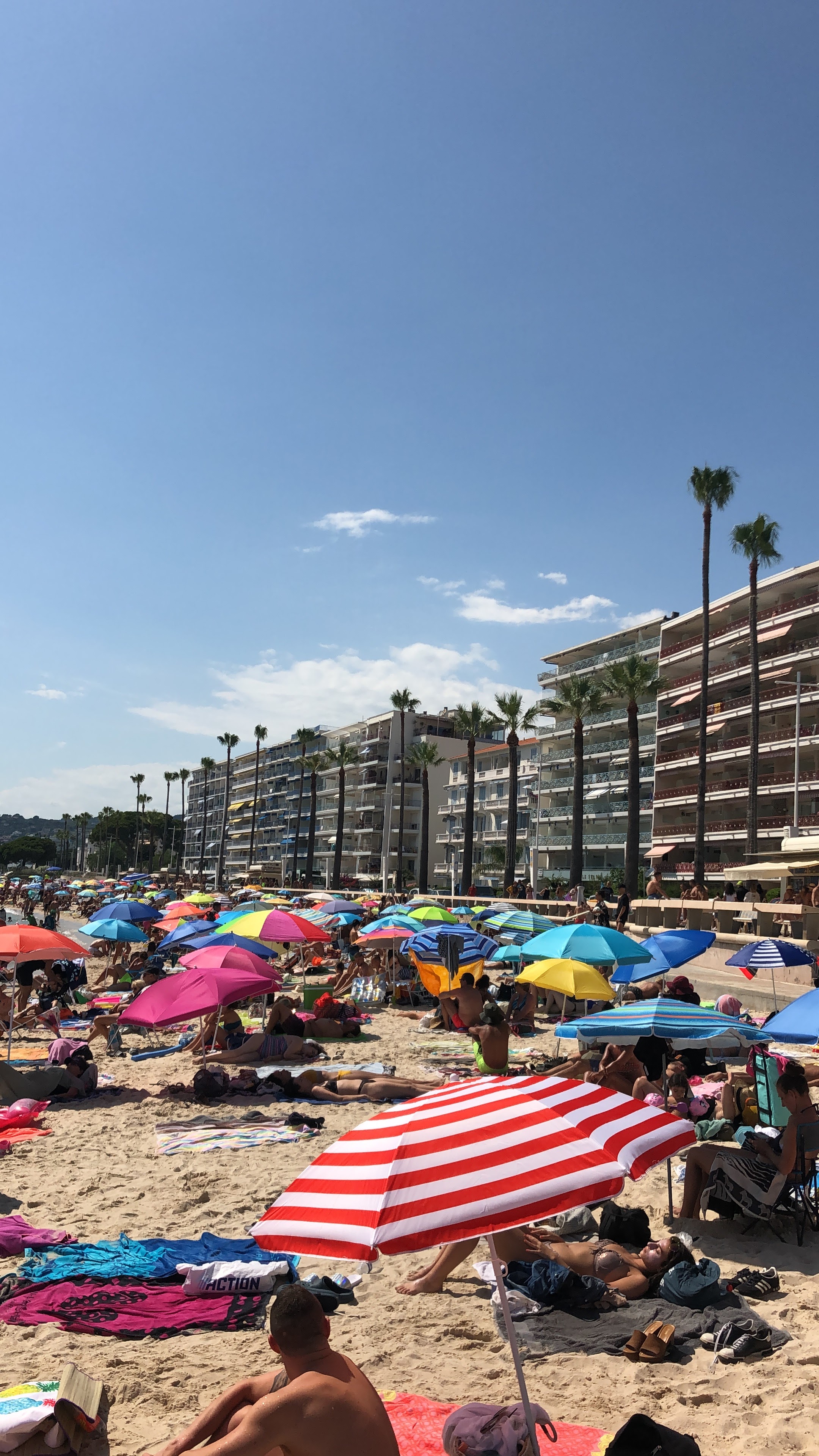 Une plage située au centre ville de Juan les pin ,des petite vague ,pour camper 2h sur le sable très fin il faut trouver des places mais il n’y a pas assez de place il y’a aussi le vendeur de cacahuètes caramélisées qui passe , il n’y as pas de méduse et le soir il y’a tout le long de la plage dès stand de bracelet , souvenir ect …