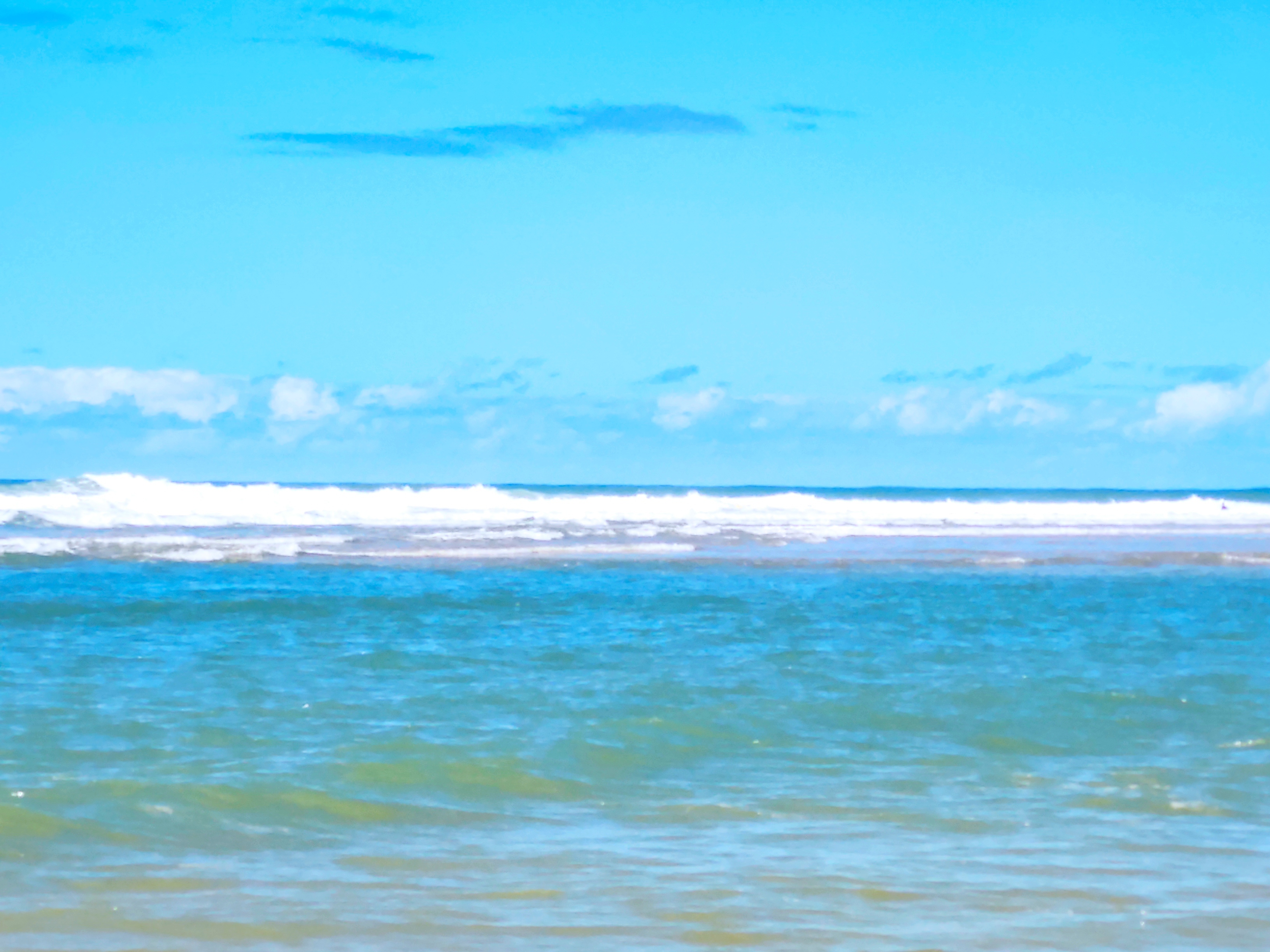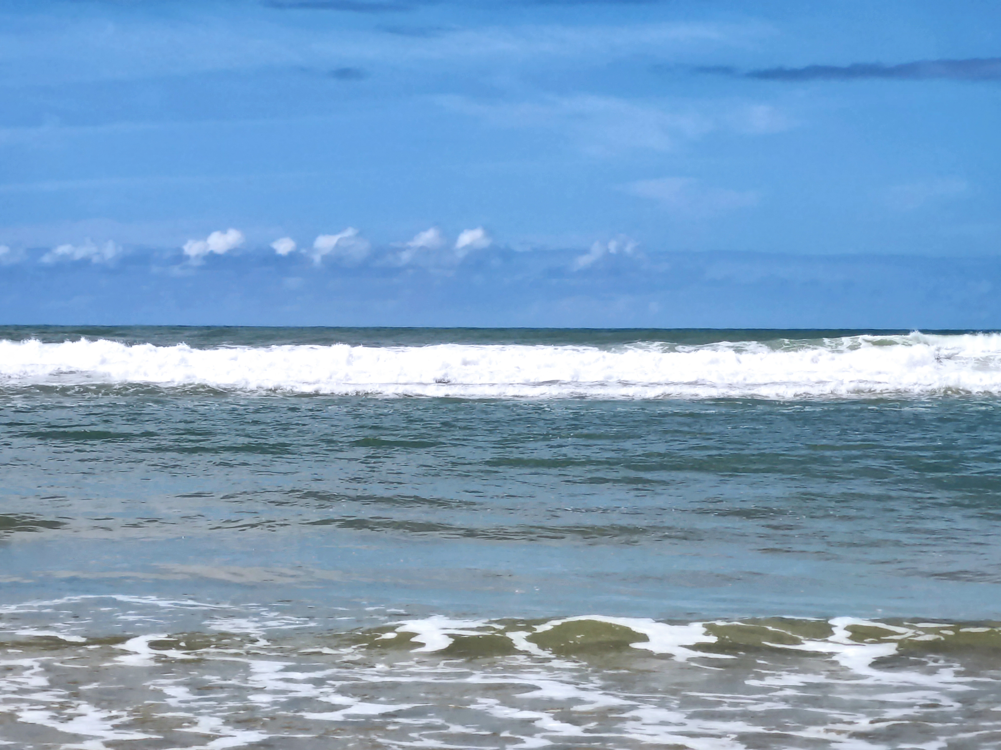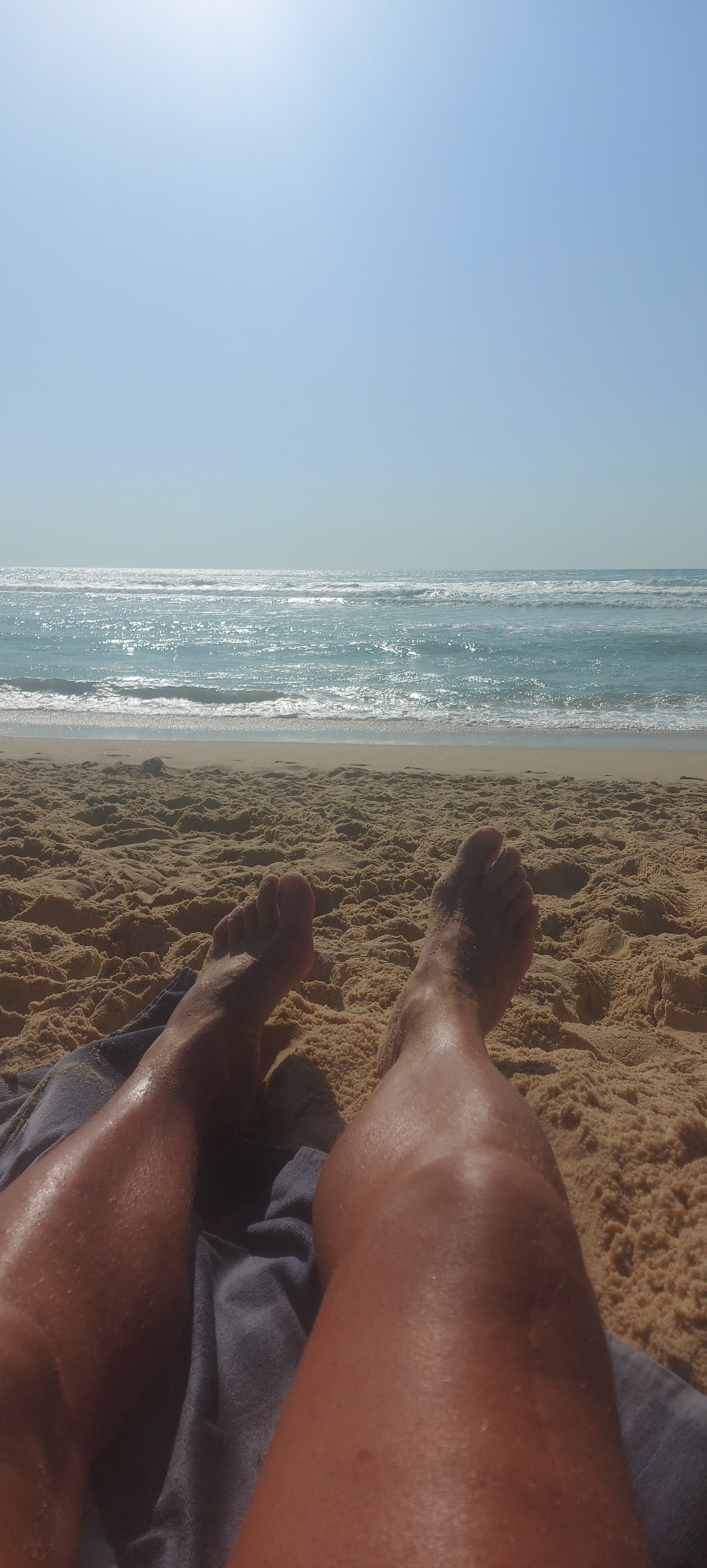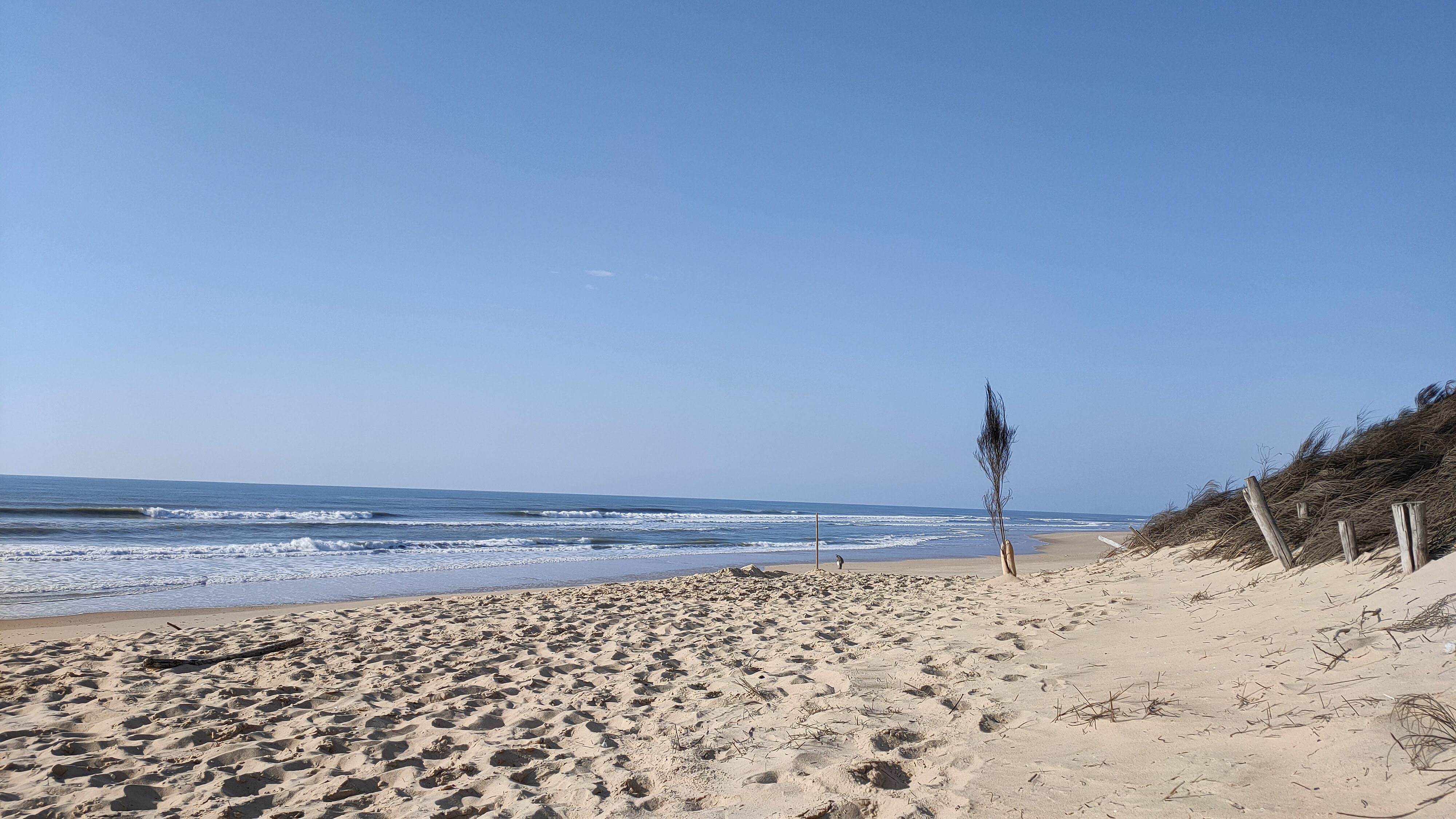 Grande plage bien large, pas d’ombre mais les vagues de l’océan.