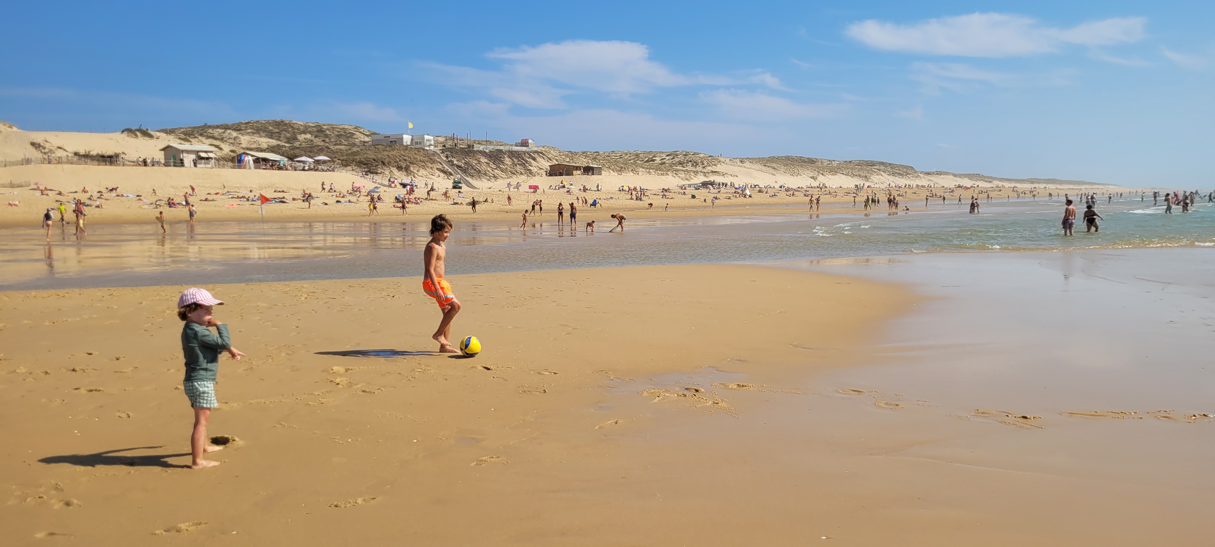 Grande et magnifique plage de sable fin où il est facile de trouver un endroit tranquille et des petits bassins pour les enfants. Très agréable en septembre.