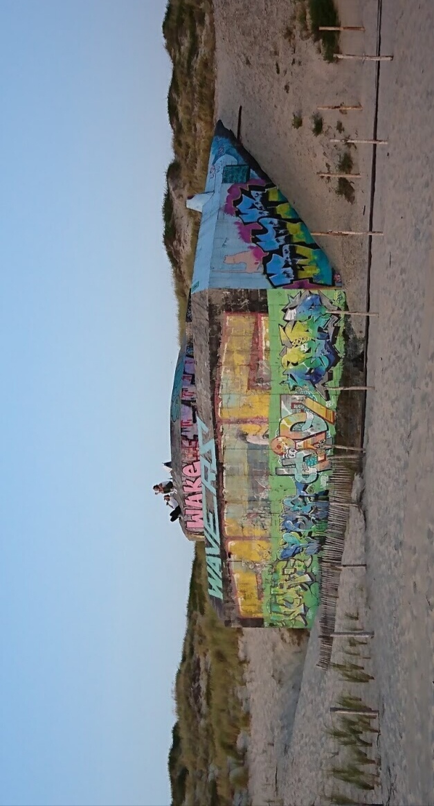 Belle plage pour faire de jolie photos blockhaus tagués à découvrir...