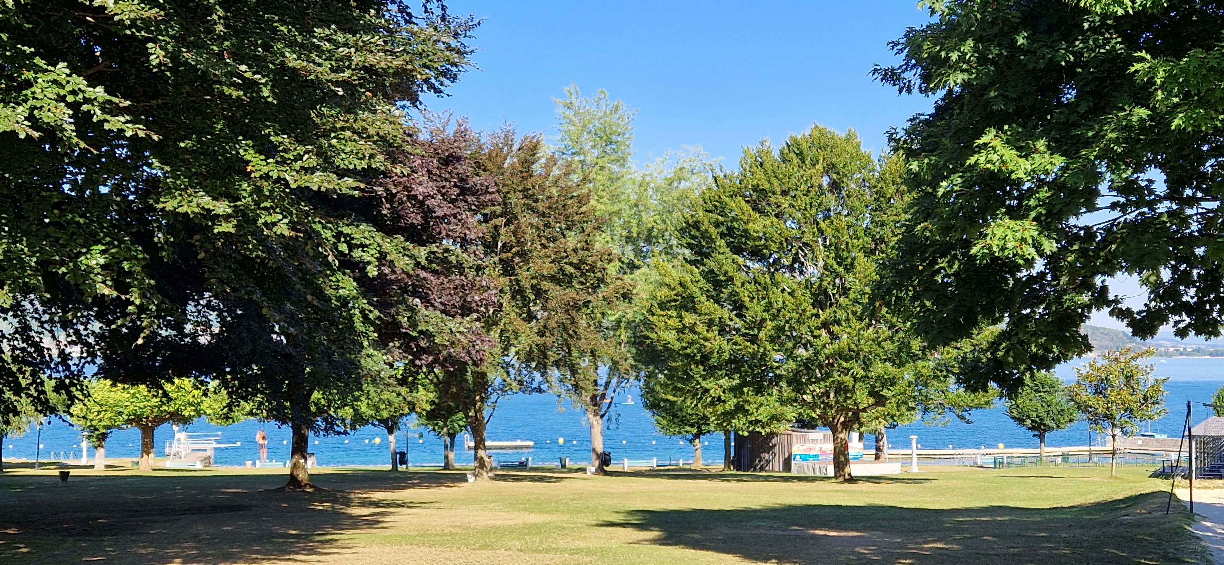 Merveilleuse plage, pur moment de détente sur l’herbe avec vue et baignade au lac d’Annecy.