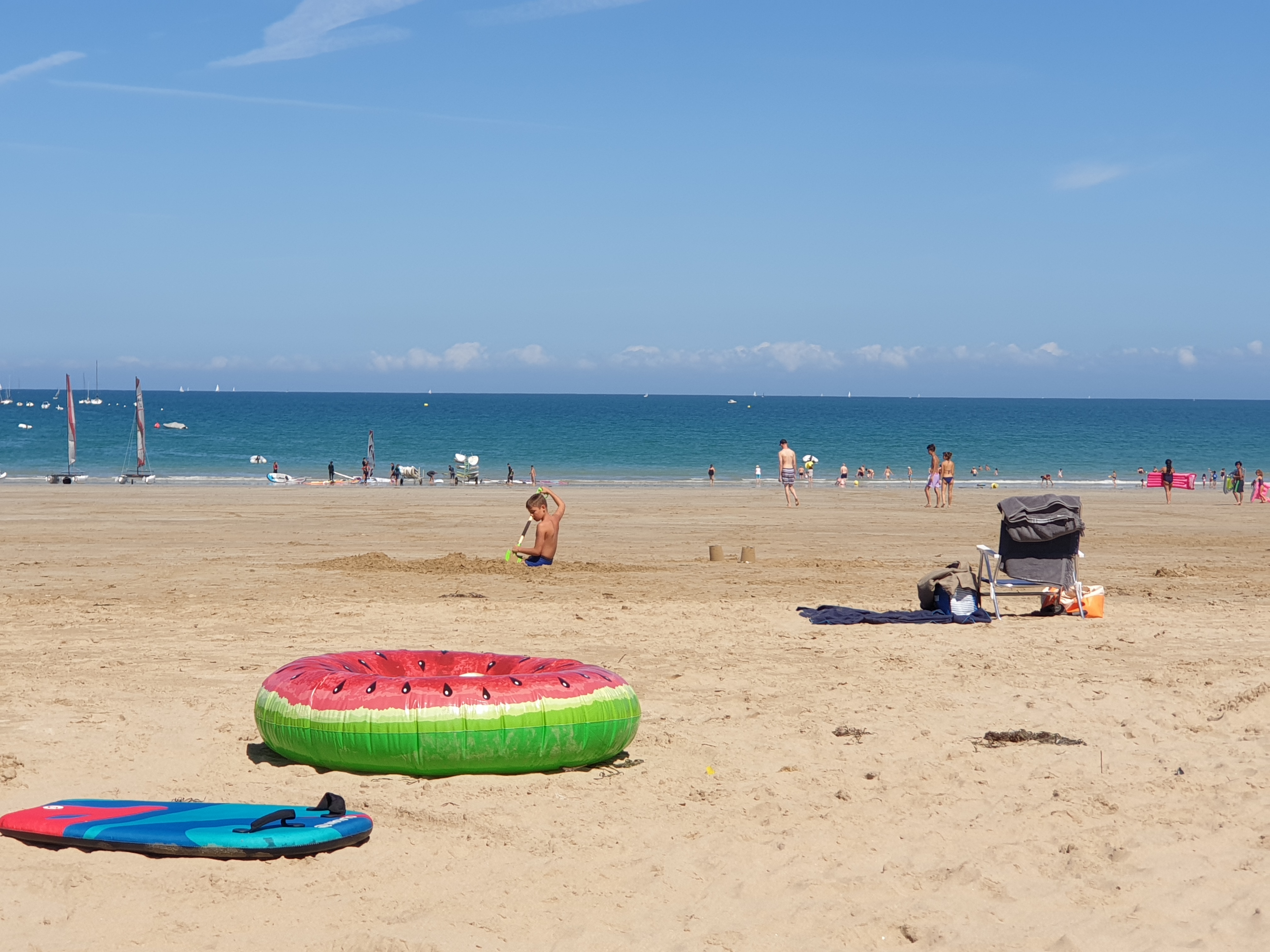 Posté le 05/08/2022 à 21:12"Plage familiale agréable. Attention aux horaires de marée sinon il faut aller chercher la mer, ce n'est pas elle qui viendra 😁 2 bémols pendant mon séjour : beaucoup de férus de cerf-volant, pas toujours très doués et dont le joujou peut vous tomber dessus (un énorme est tombé à 1 m de moi et ça surprend !). Des rotations de petits bateaux tractants des grosses bouées, apportent des effluves d'échappements et des remous de sable. Pas cool. Le plus : le bar/restaurant de la plage sympa avec ses transats"