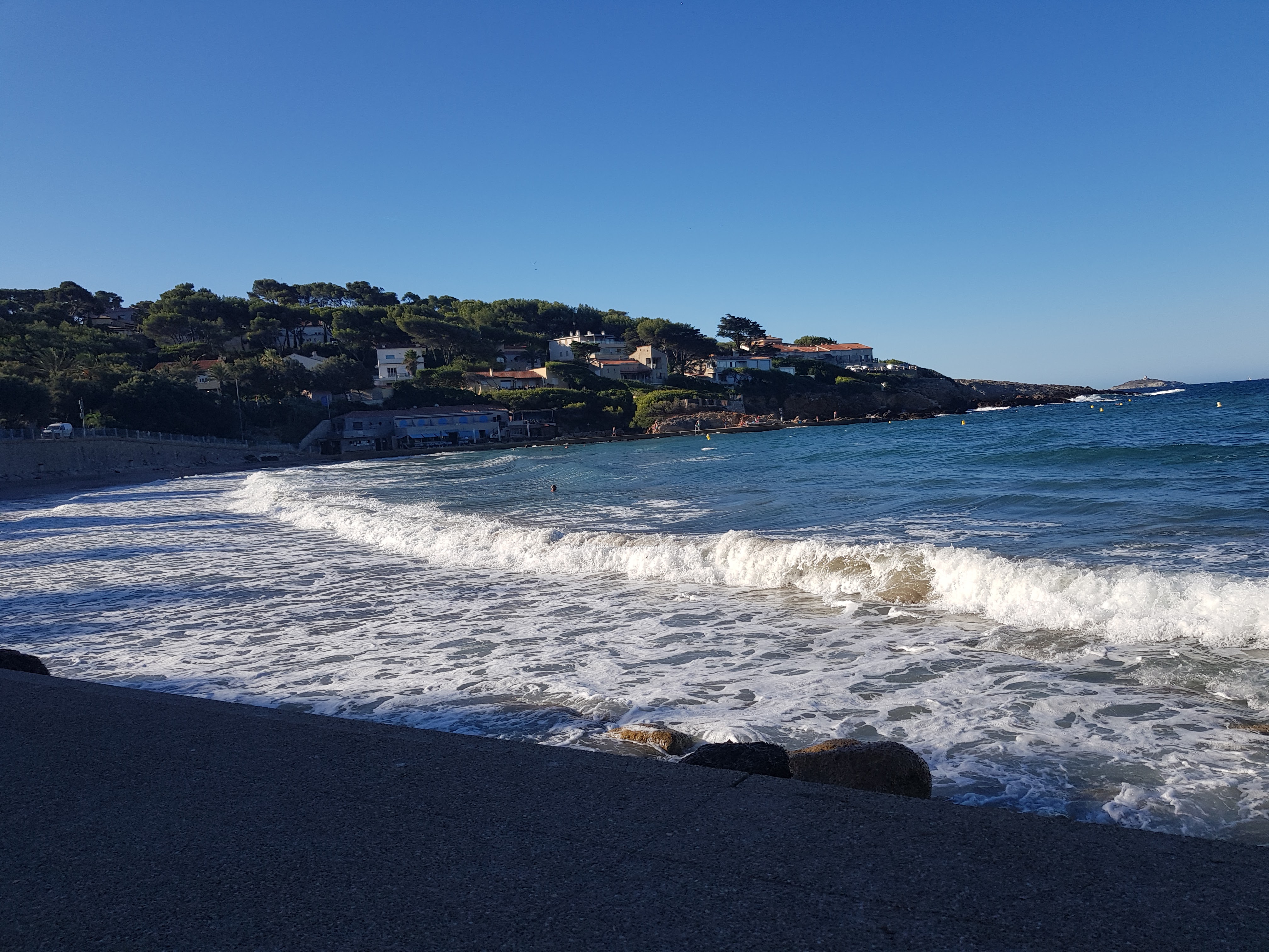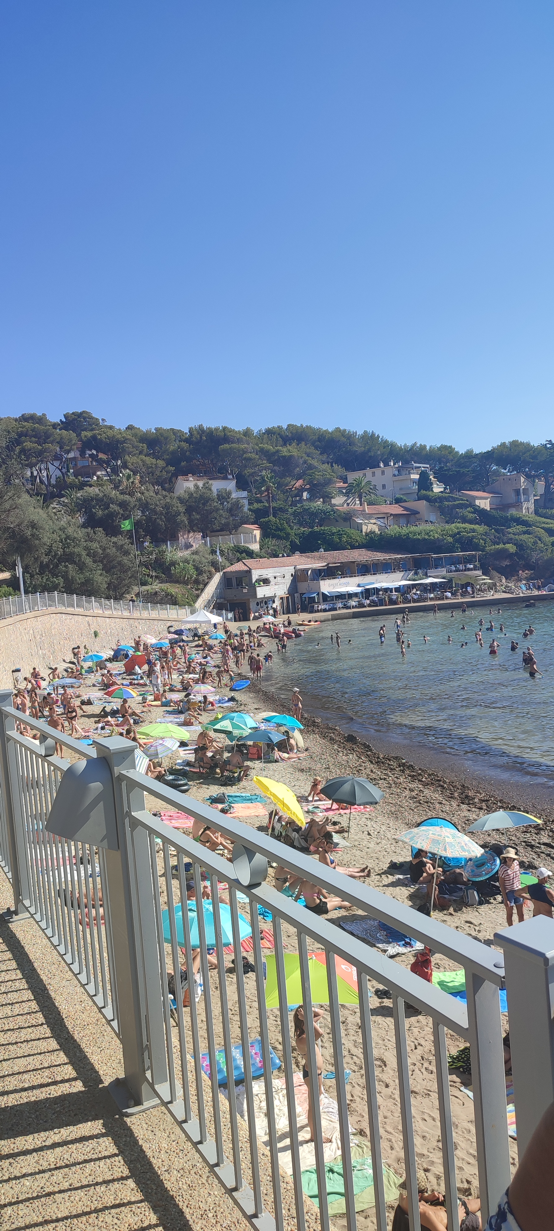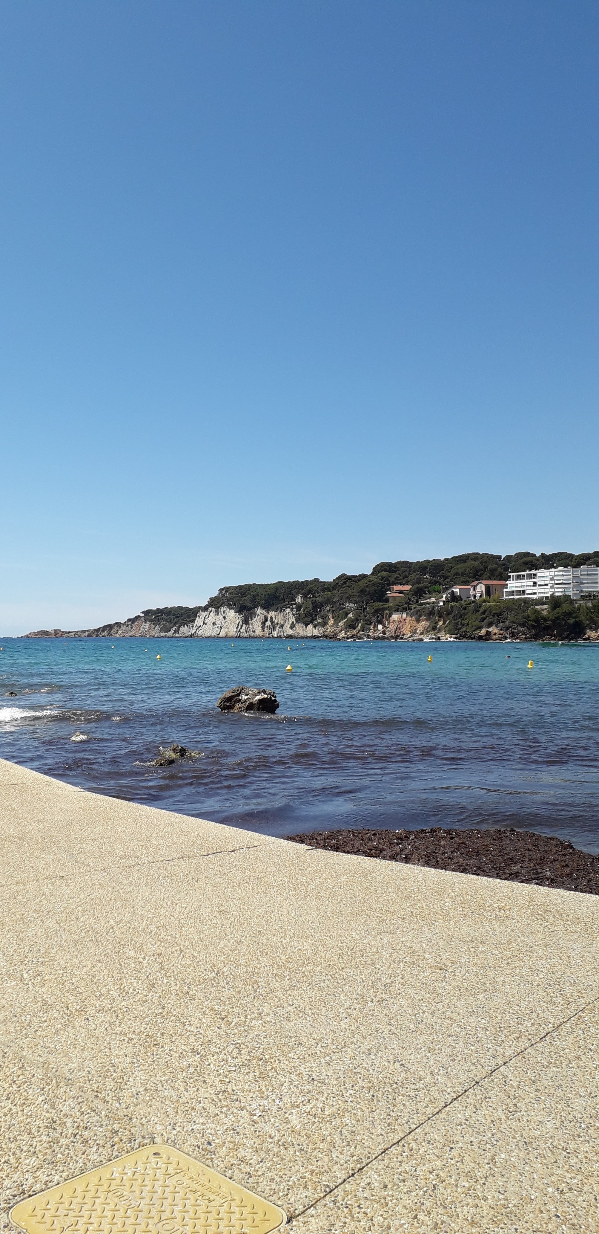 Posté le 14/07/2019 à 14:23"La plage est claire et magnifique. Ce jour là, il y avait beaucoup d’algues, ça donne moins envie de se baigner mais tout de même, le cadre est très joli. Tout près des quartiers chics de Sanary."