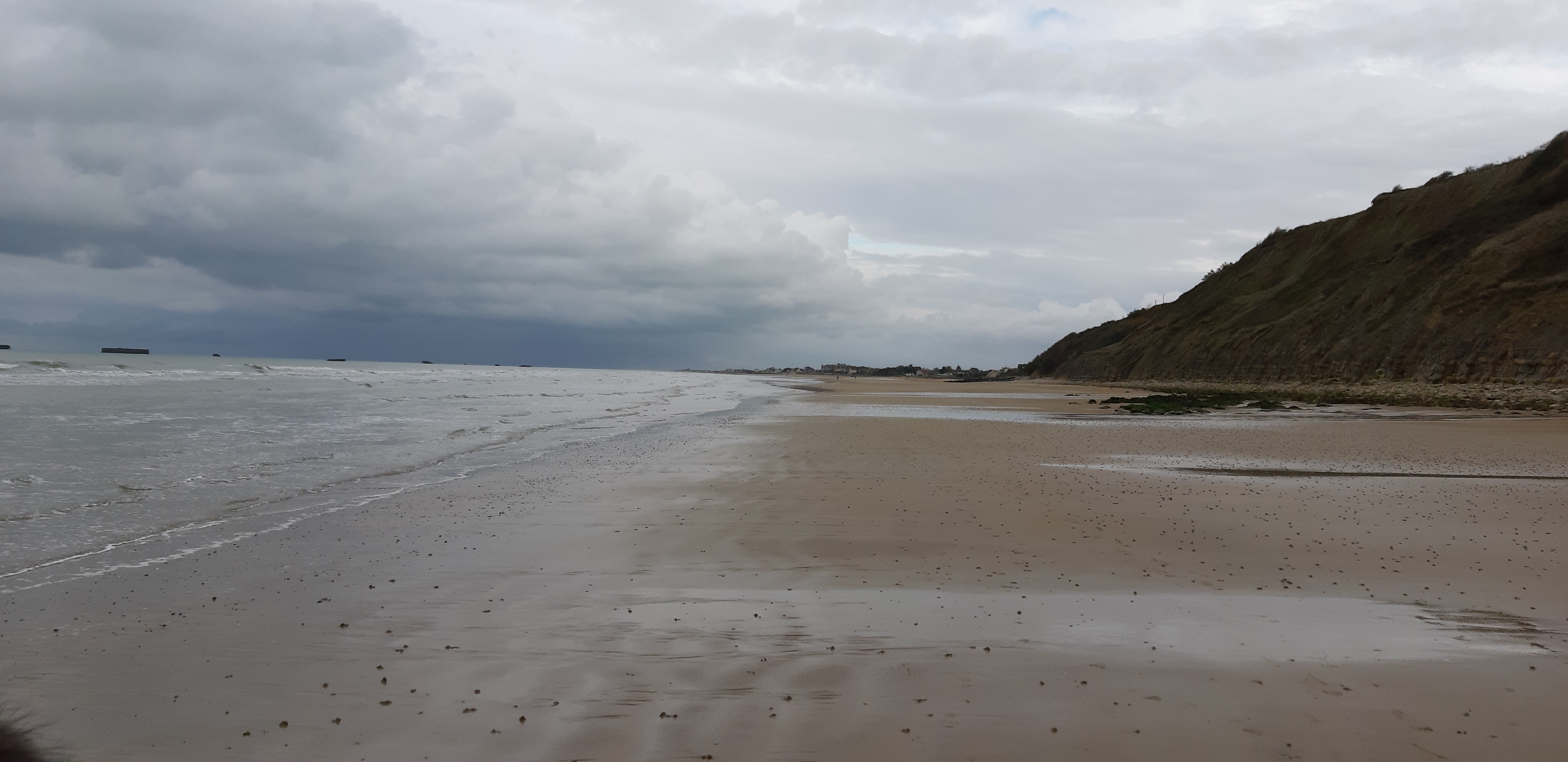 Posté le 24/10/2023 à 06:21"Ciel de fin du monde au-dessus de Mulberry B face à Arromanches. Ces longues balades sur les plages du débarquement sont toujours agréables."