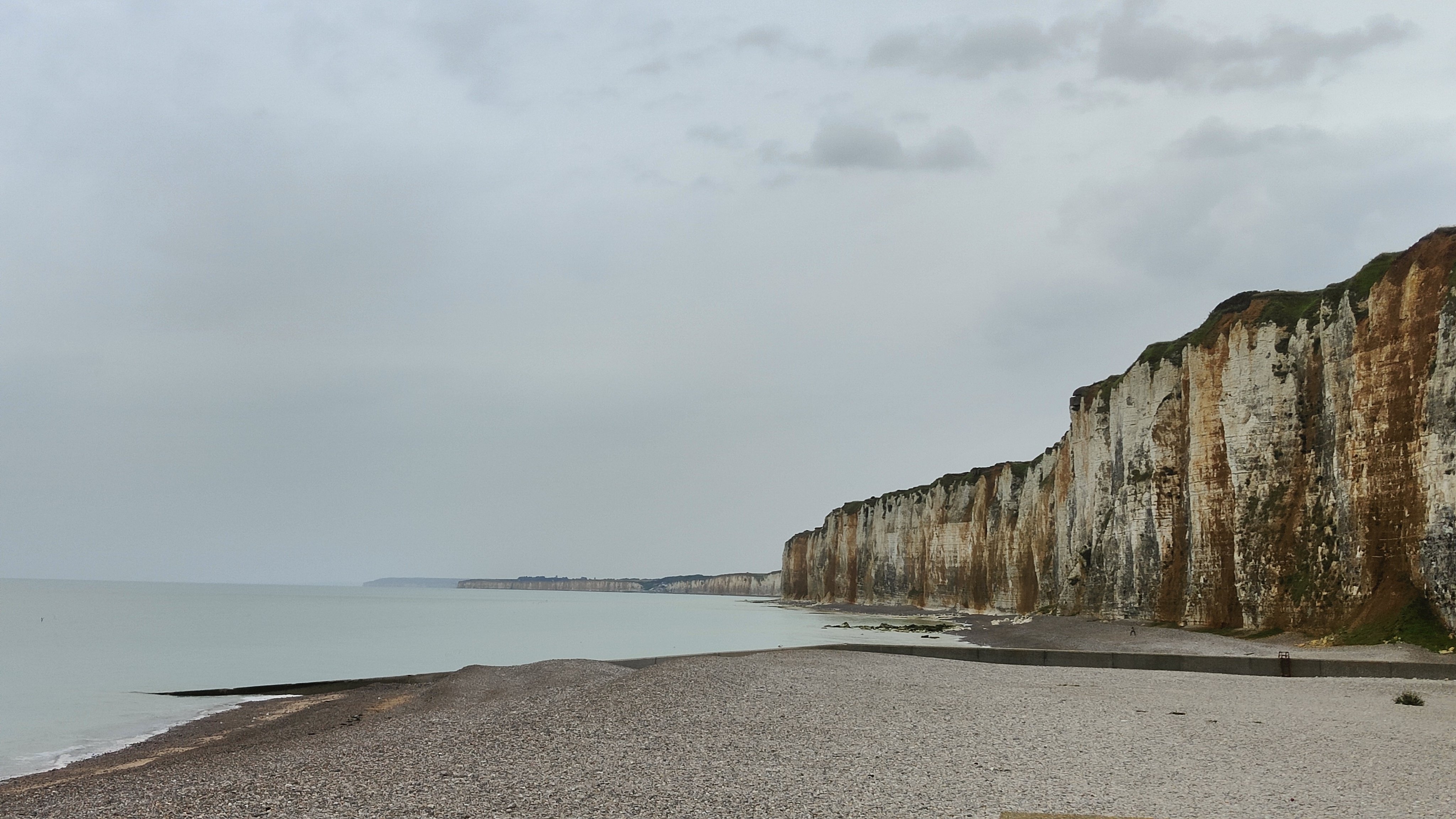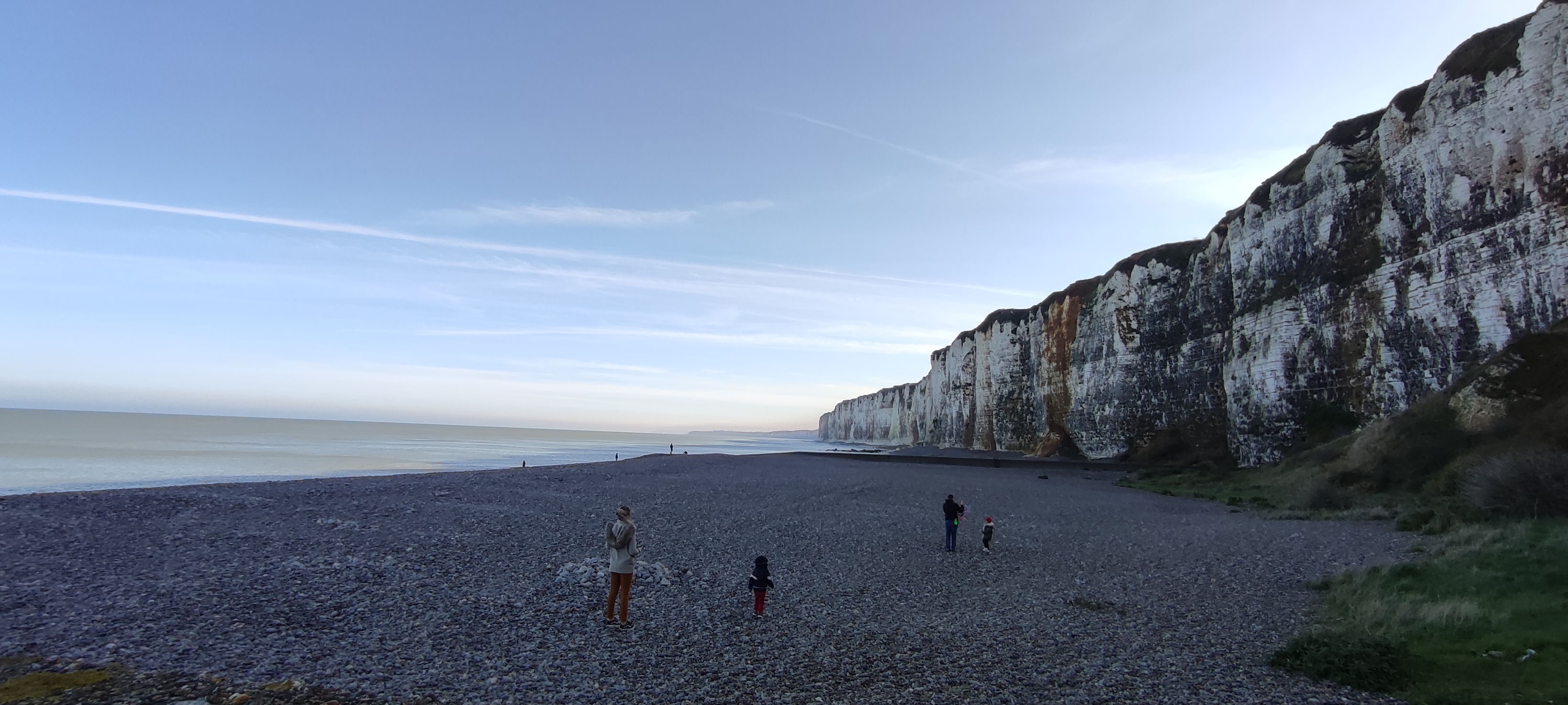 Plage de galet Petit port de pêche agréable Pas trop de touriste Gde falaise de craie