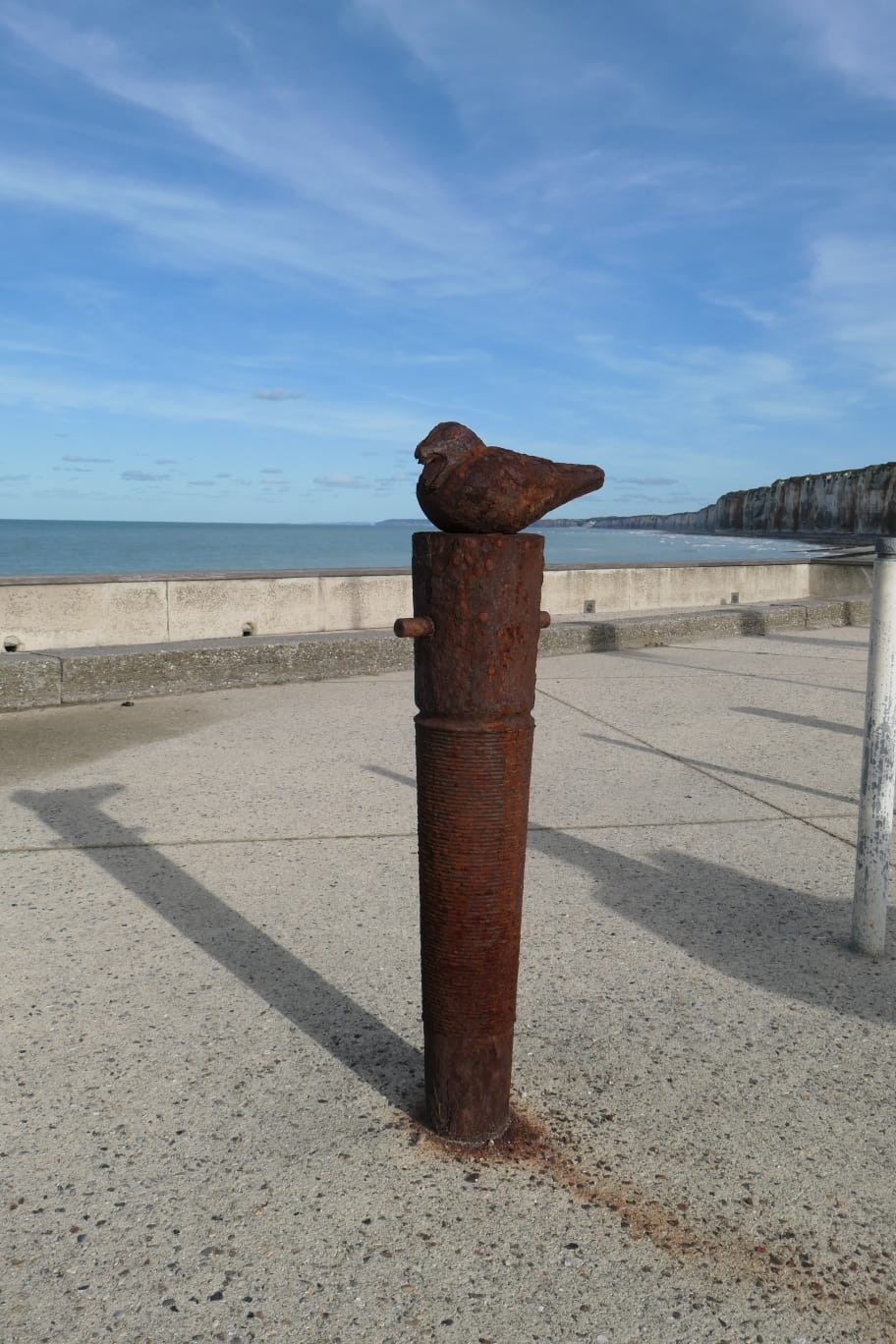 Petite promenade avec photos de personnes symbolisant un film sur la digue. Beau point de vue et steles de Coste et Bellonte avec le point d'interrogation sans oublier le souvenir des valeureux soldats. Petite ville plaisante à voir. Et surtout beaucoup moins de monde qu'à Étretat. De plus, charmantes demoiselles office de tourisme A voir et oubliez Etretat