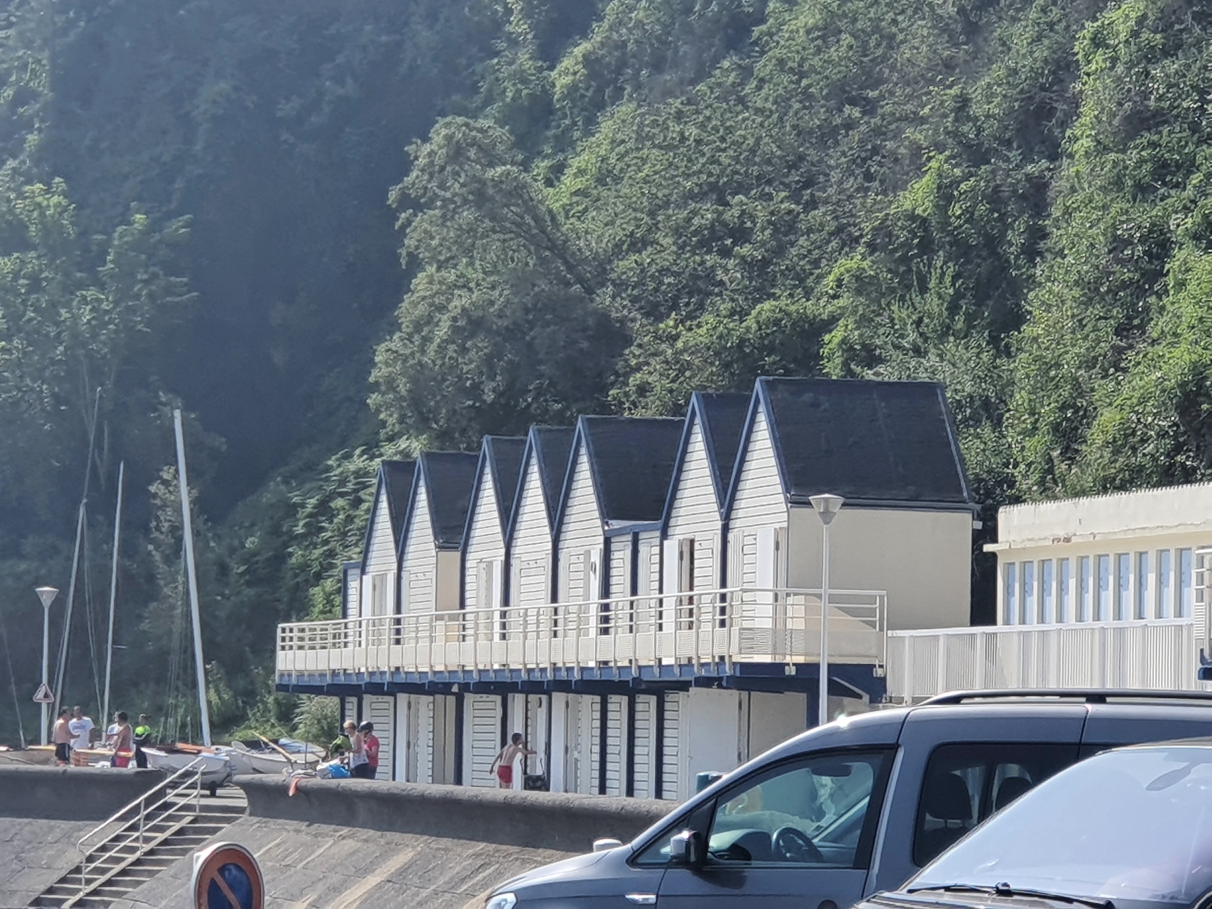 Il n'y a pratiquement pas de sable sec sur cette plage,de plus c'est une plage qui est vite à l'ombre à cause de la falaise,et il n'y a pas de place pour se garer.