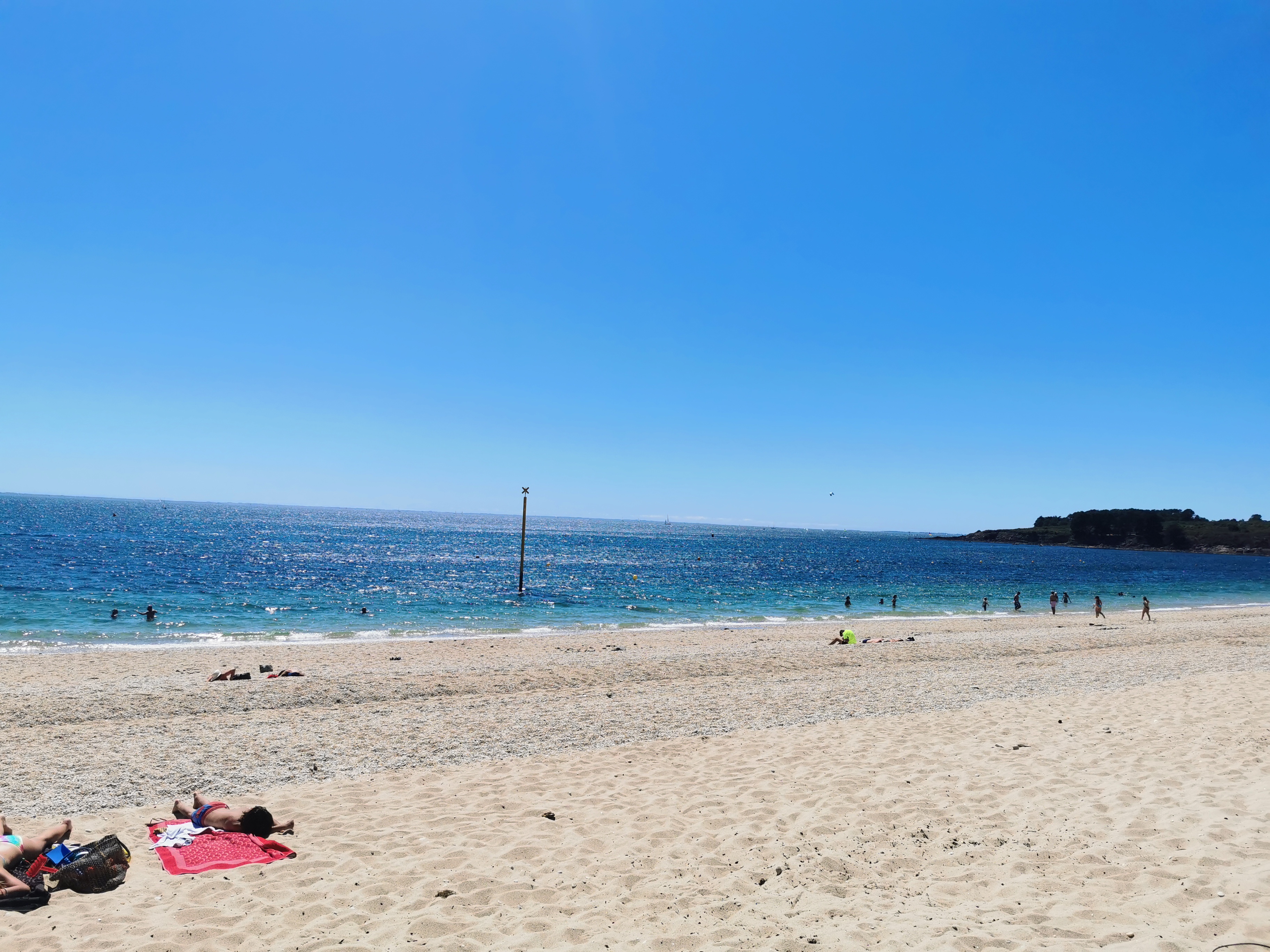 Assez de place pour tout le monde,eau agréable Prévoir chaussures de plage pour les cailloux