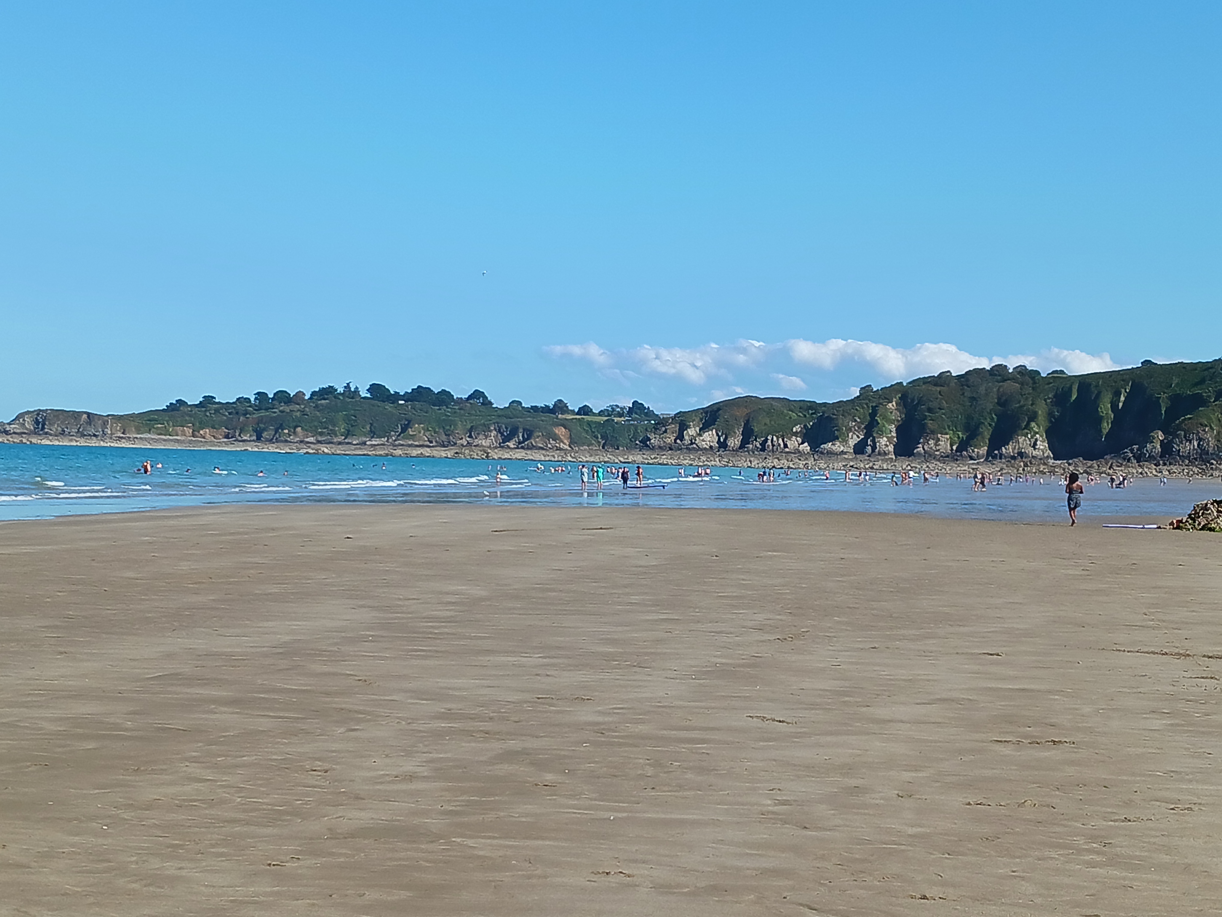 Posté le 15/08/2021 à 06:47"Belle plage de sable ou de galets lorsque la marée est haute. L'eau est bonne pour un Breton mais apparement fraîche pour les autres."