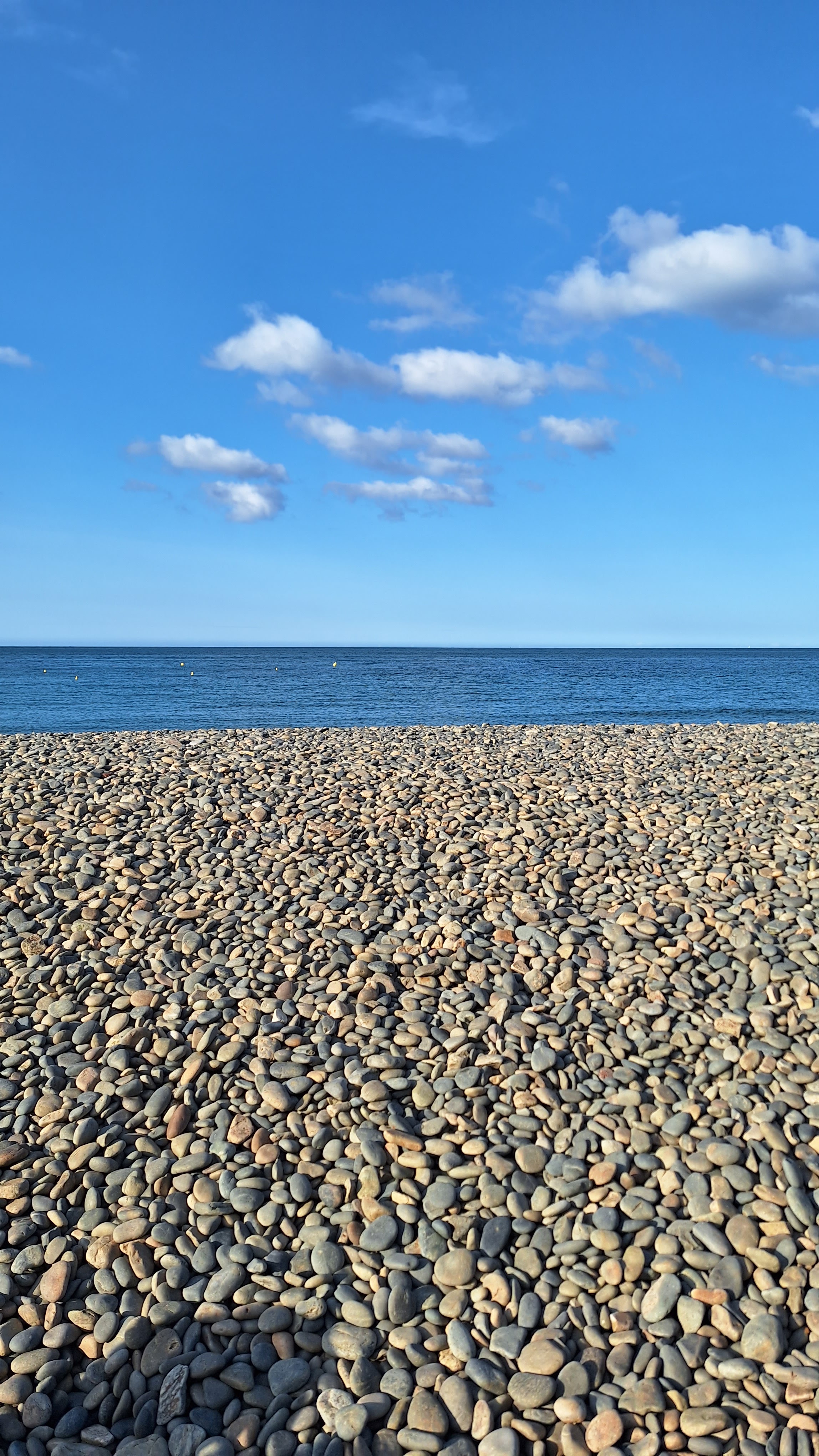 Une jolie plage de galets . A marée haute le bruit des galets qui roulent dans les vagues est très reposant !