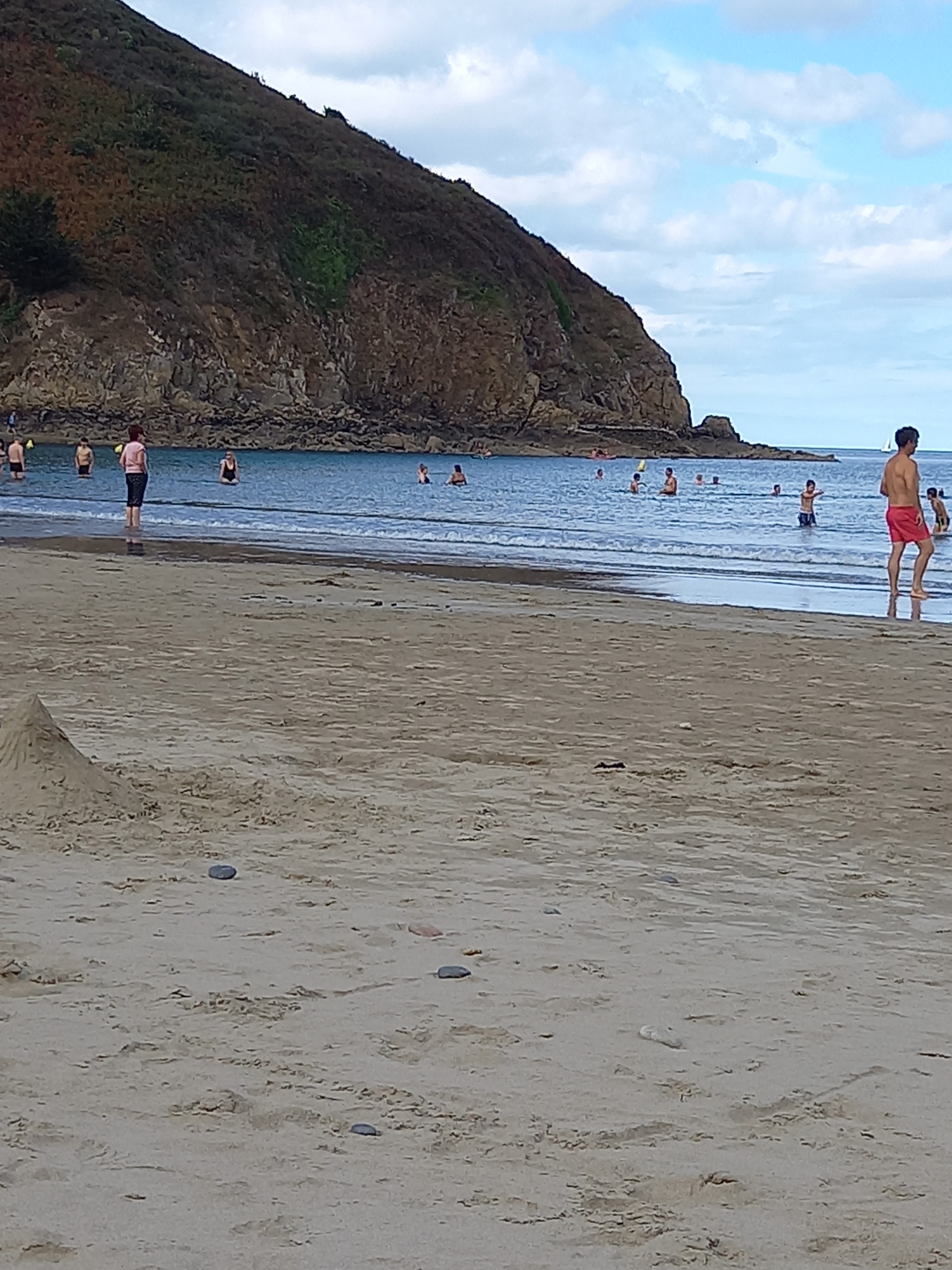 Belle plage de sable ou de galets lorsque la marée est haute. L'eau est bonne pour un Breton mais apparement fraîche pour les autres.