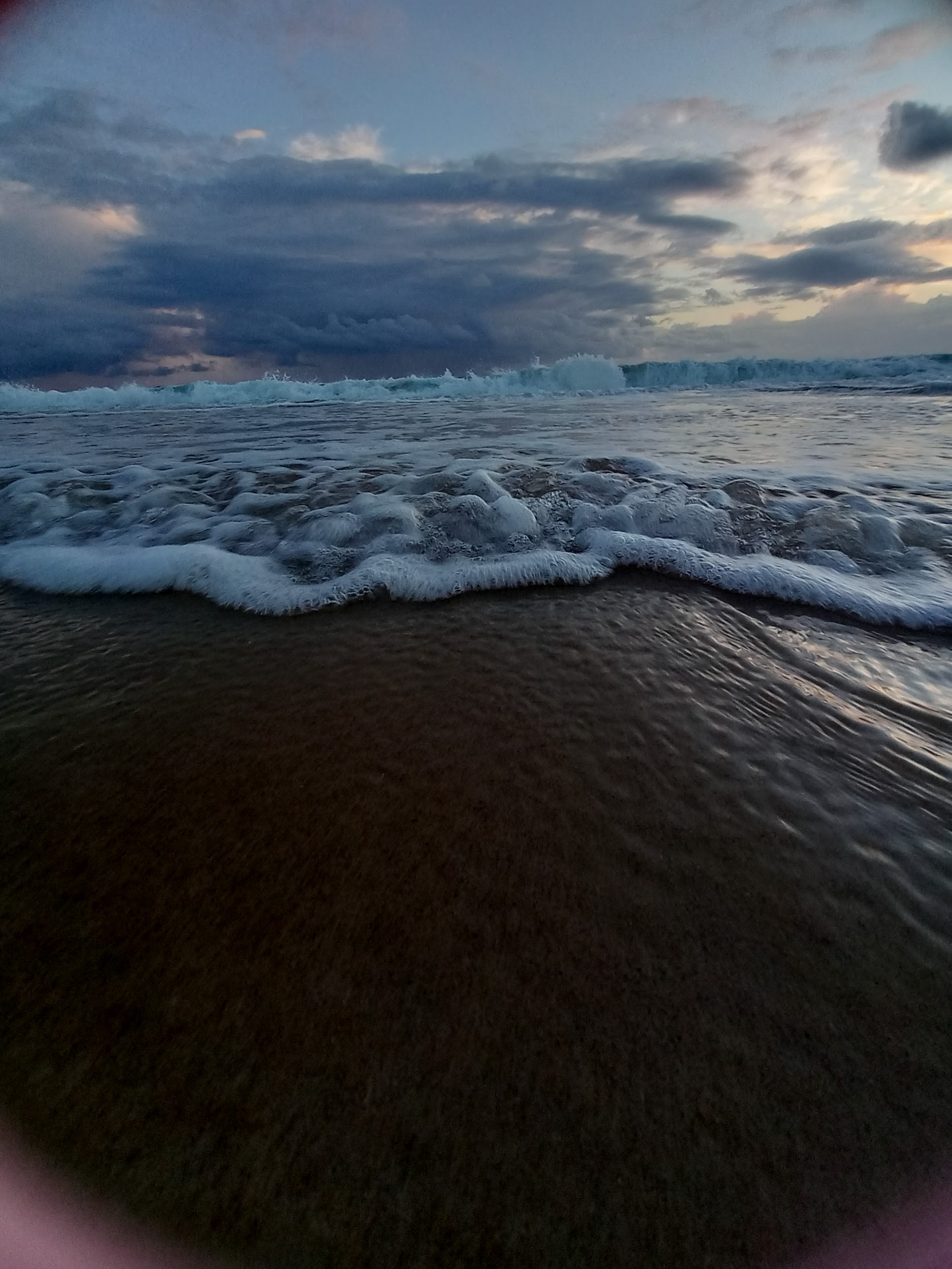 Plage qui descend. Pas pratique. Les vagues se cassent sur le bord. Je préfère les deux autres plages